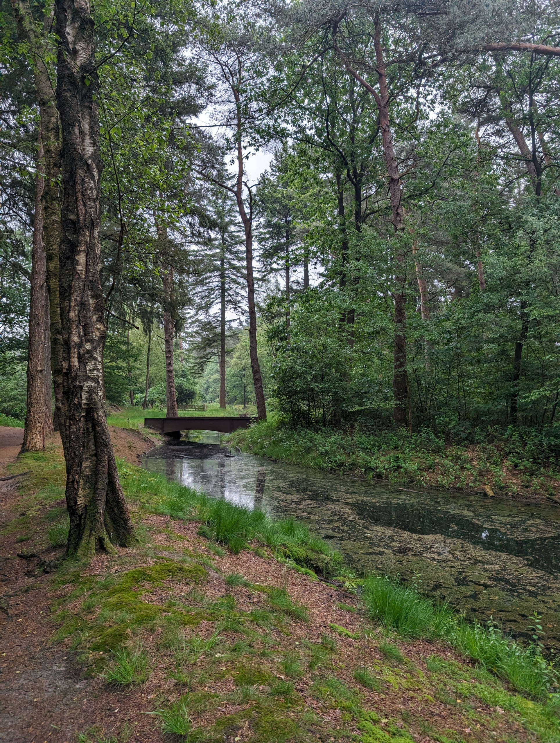 Nadat we een brug hadden overgestoken, over een hek waren geklommen en een zandpad hadden gevolgd, ging het bos over in heide. Een uitgestrekte vlakte met veel zand en heideplanten. We moesten een ander pad volgen vanwege het hoge water, maar hoefden niks van het uitzicht te missen omdat er geen bomen stonden. Ook op de heide was een mooie vijver te vinden en daarna konden we weer op de gebruikelijke route stappen, richting het einde van de route. Gelukkig maar, want de druppels begonnen toch wel wat harder uit de lucht te vallen. Voldaan kwamen we bij de auto, we waren het er over eens: de route was prachtig. Ondanks, of misschien wel dankzij, de regen was het net een sprookje!
